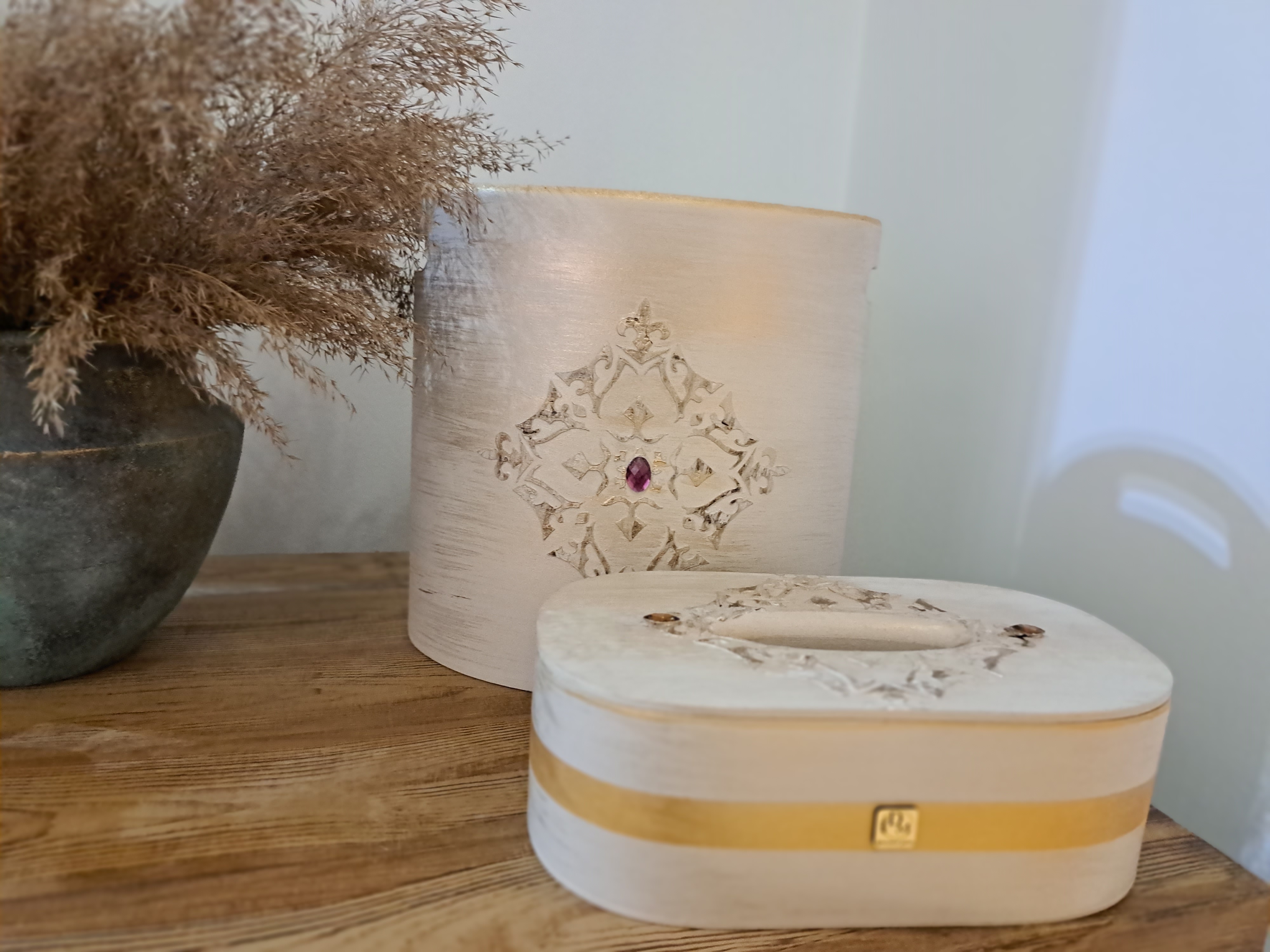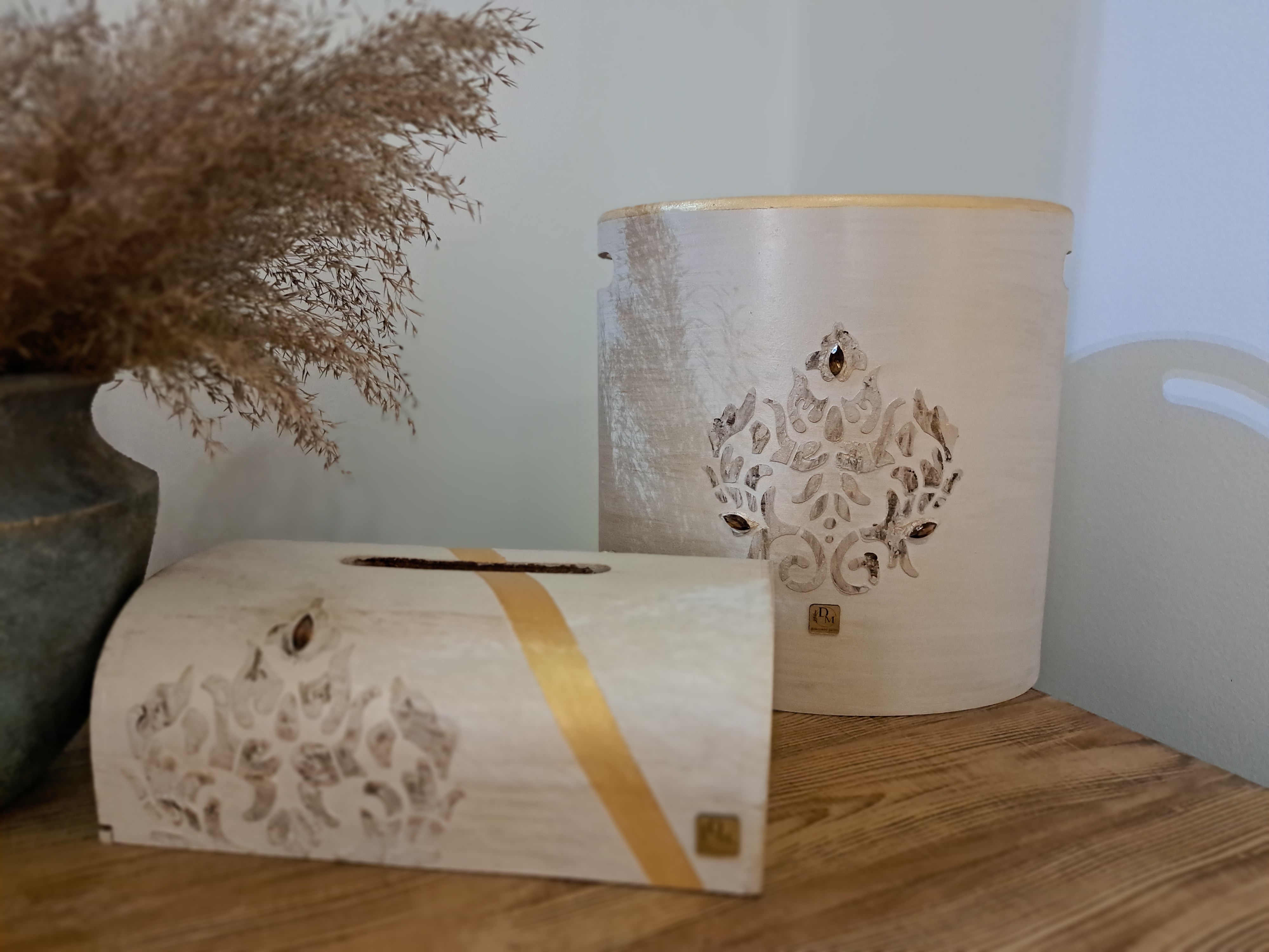 ست سطل و جا دستمال چوبی